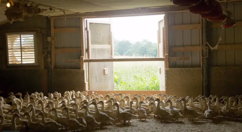 Na farmě v Hudson Valley nemůže být o krutosti řeč. Ptáci mají mimo krmnou fázi volný pohyb a i během krmení nejsou v klecích, ale pouze v menších skupinových ohrádkách a sonda se jim zavádí jen během samotného krmení.